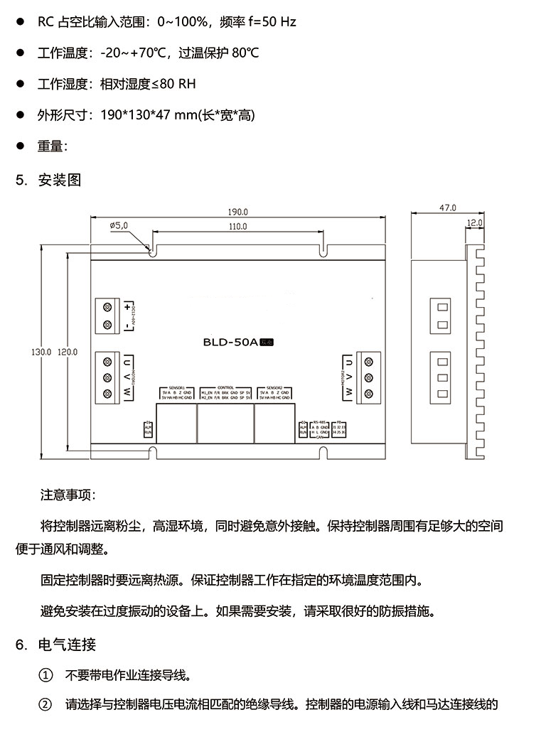 BLD-50A為雙通道電機(jī)控制器。